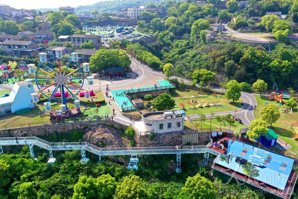 2026年4月26日,浙江省玉环市干江镇上栈头景区,游客在体验玻璃吊桥、高空骑车、丛林穿越等项目, ...