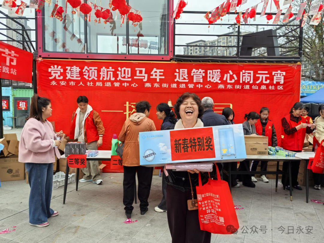 2月25日,燕东街道仙泉社区广场张灯结彩,“党建领航迎马年 退管暖心闹元宵”主题游园活动热闹举行。