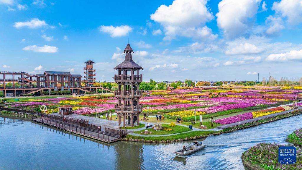 11月2日,游客在江苏省兴化市千垛景区赏菊游玩(无人机照片)。 深秋时节,景色绚烂,全国多地迎来赏 ...