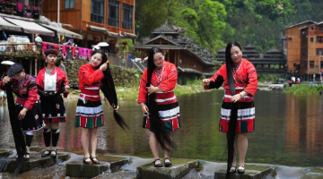 4月19日,广西桂林市龙胜各族自治县龙脊镇金江村黄洛瑶寨举行一年一度的红瑶“长发节”,通过长发梳妆 ...